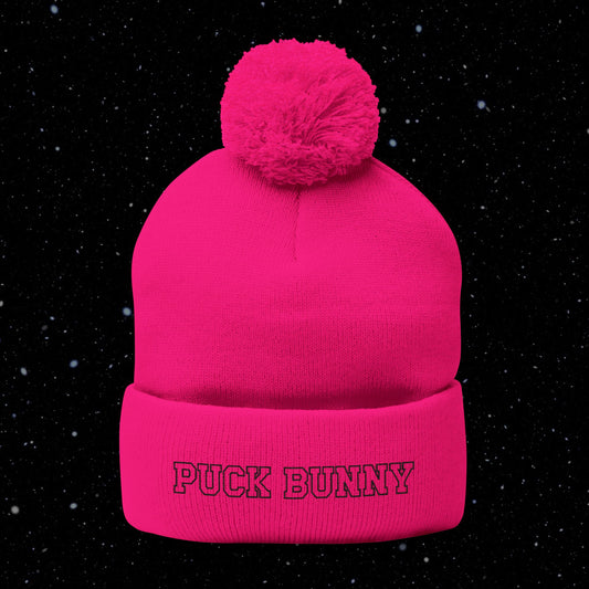 PUCK BUNNY (black) Pom-Pom Knit Cap (Embroidery)